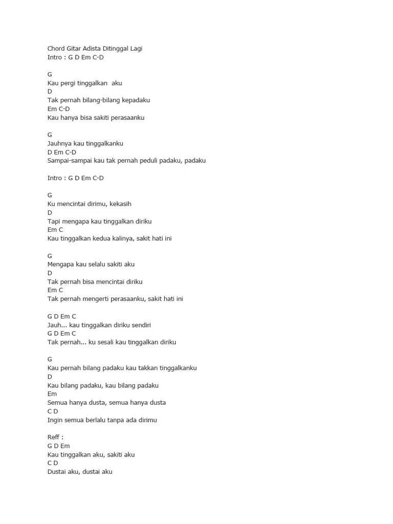Chord Adista Saranghae - Full Chord Lagu Adista Kunci Dasar Gitar Lirik Lagu Terbaru Cort : Sungguh sakit sakit sakit ku rasa.. C g am f (00:20) c g rasa sakit ini sangatlah perih . G am sungguh sakit.sakit.sakit kurasa Diposkan oleh nasty di 09:30:00. Intro c g am f. Rasa sakit ini sangatlah perih.